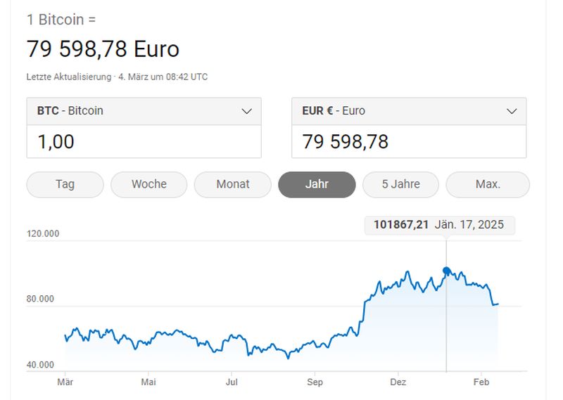 Update 3. März 2025 - „Bitcoinkurs steigt nach Trump-Posting wieder rasant. Vergangene Woche rutschte der Bitcoin-Kurs unter 78.000 Dollar – nun hat er wieder kräftig zugelegt. Dafür sorgten vor allem neue Aussagen von US-Präsident Donald Trump über eine mögliche Währungsreserve in Kryptogeld“, berichtet das Manager-Magazin.de